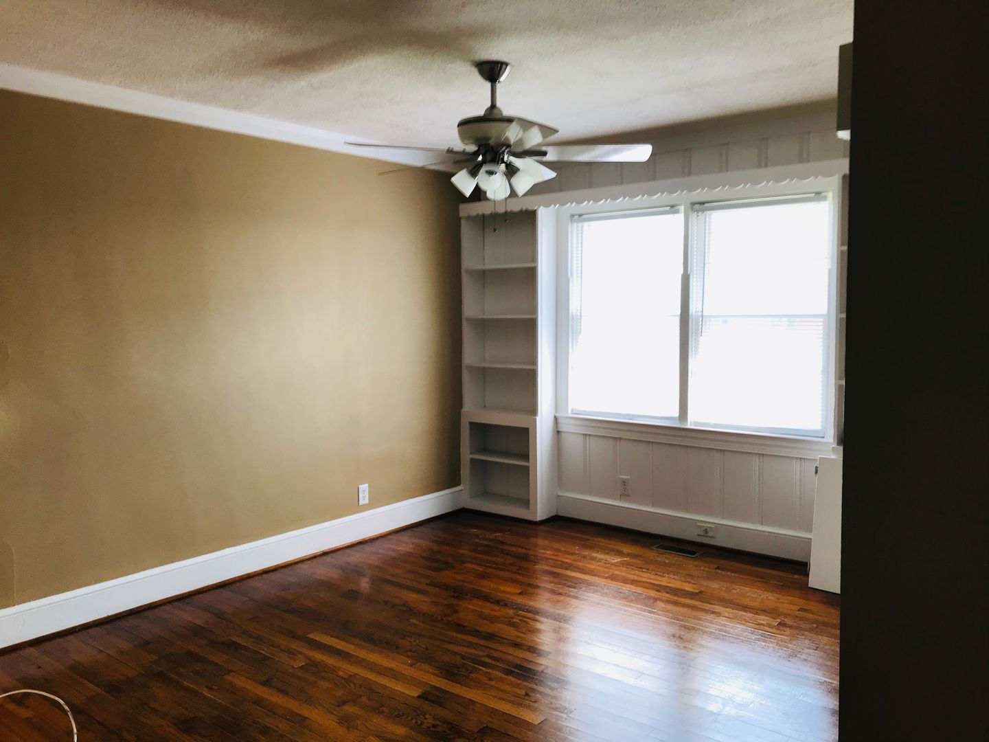 Expansive double-size family room with gorgeous wood floors and tons of natural light. Three large and bright bedrooms with plenty of storage and more of the same amazing wood floors. One generous sized shared bath with two linen/storage closets, and a second smaller bath with a tiled shower stall in one of the bedrooms. Separate dining room with built-ins, and an almost completely updated kitchen with new floors, countertops, and a great size pantry.