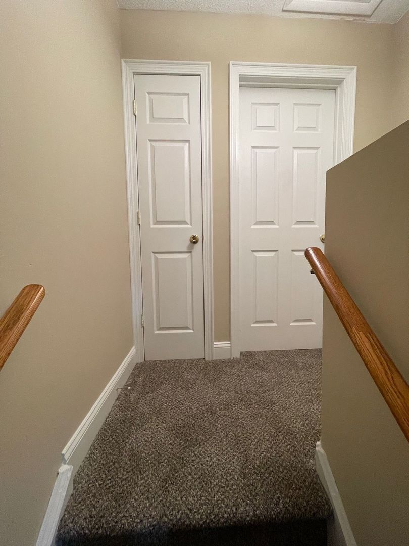 This 2 bedroom / 1.5 bathroom condo is a gem! Spacious kitchen with refrigerator, stove, dishwasher, and tons of cabinet space w/ pantry. Laundry closet. Large living room with half bath in hall for guests, a coat closet, and separate storage under the stairs. The two bedrooms and full bath are located upstairs. Large closets in each room and additional linen closet in hall.