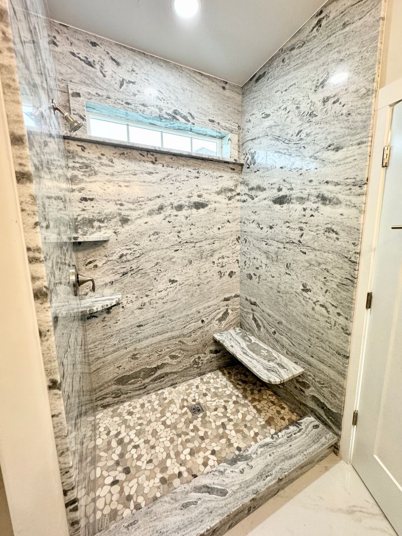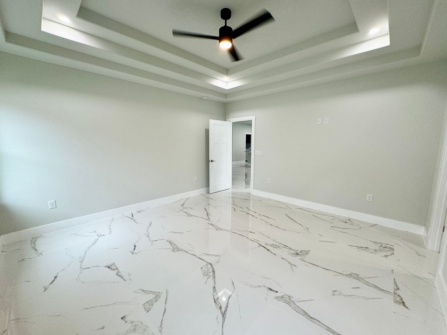 Master suite with en-suite bath - custom walk-in shower with bench, walk-in closet, & beautiful tray ceiling detail.