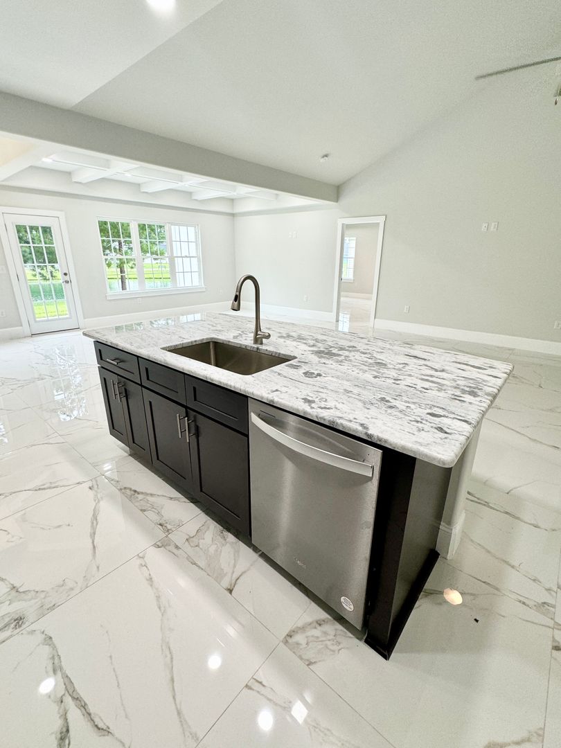 Kitchen features include custom cabinets, top of the line stainless steel appliances, eat in bar and large shared dining space.