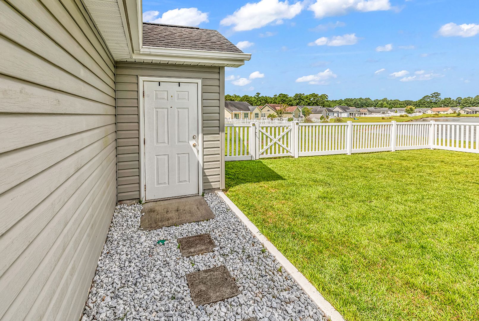 This charming 3-bedroom, 2-bathroom home features a fenced backyard with a serene lake view, perfect for relaxing or entertaining. As you step inside, you’ll immediately notice the abundance of natural light streaming through the new windows, illuminating the open-concept living space with vaulted ceilings that flows seamlessly into the dining area and spacious kitchen.
