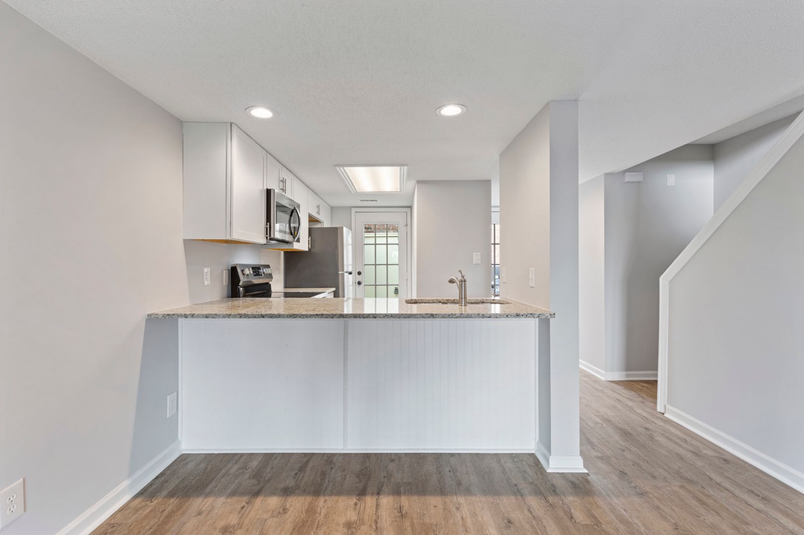 Great living space downstairs includes kitchen, living/dining, half bath, and a nice sized peaceful screened-in porch on the back of the home.