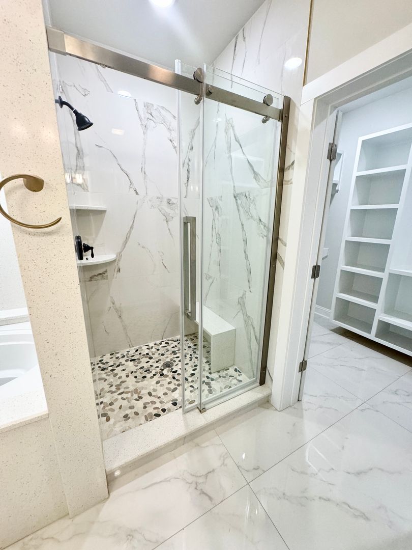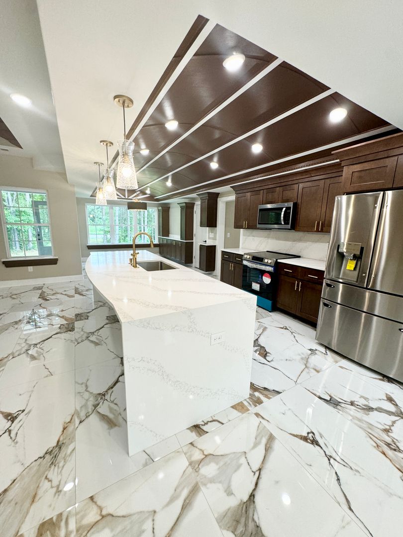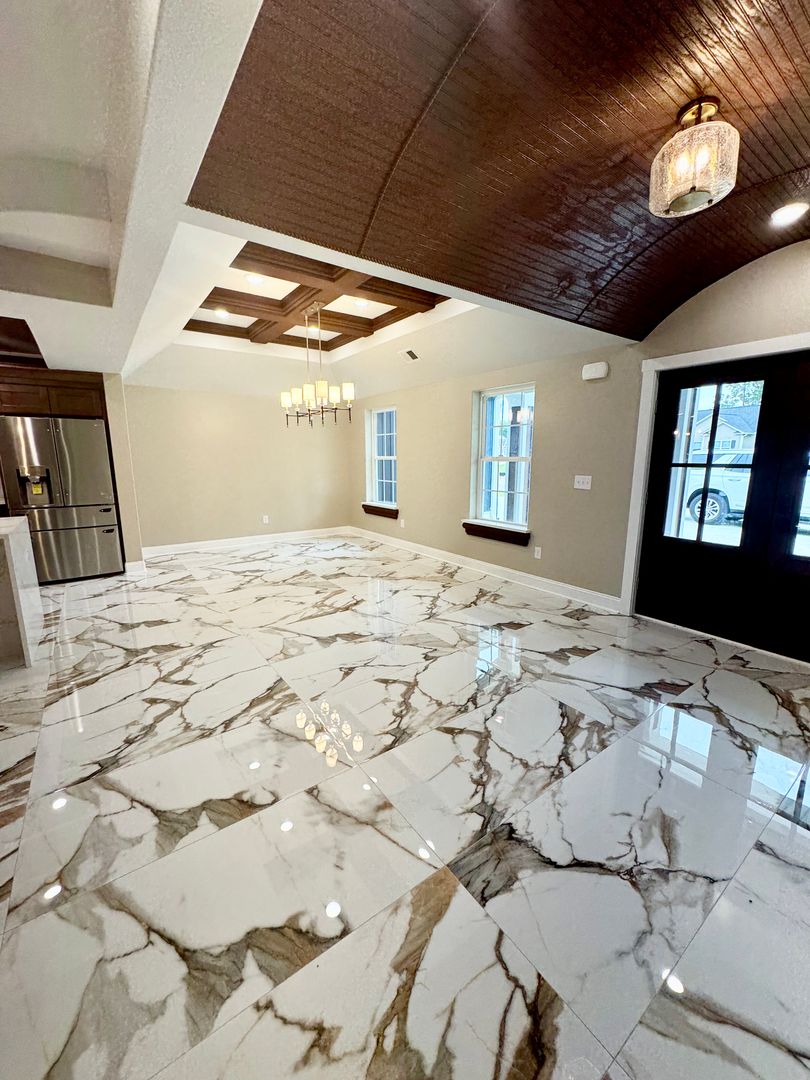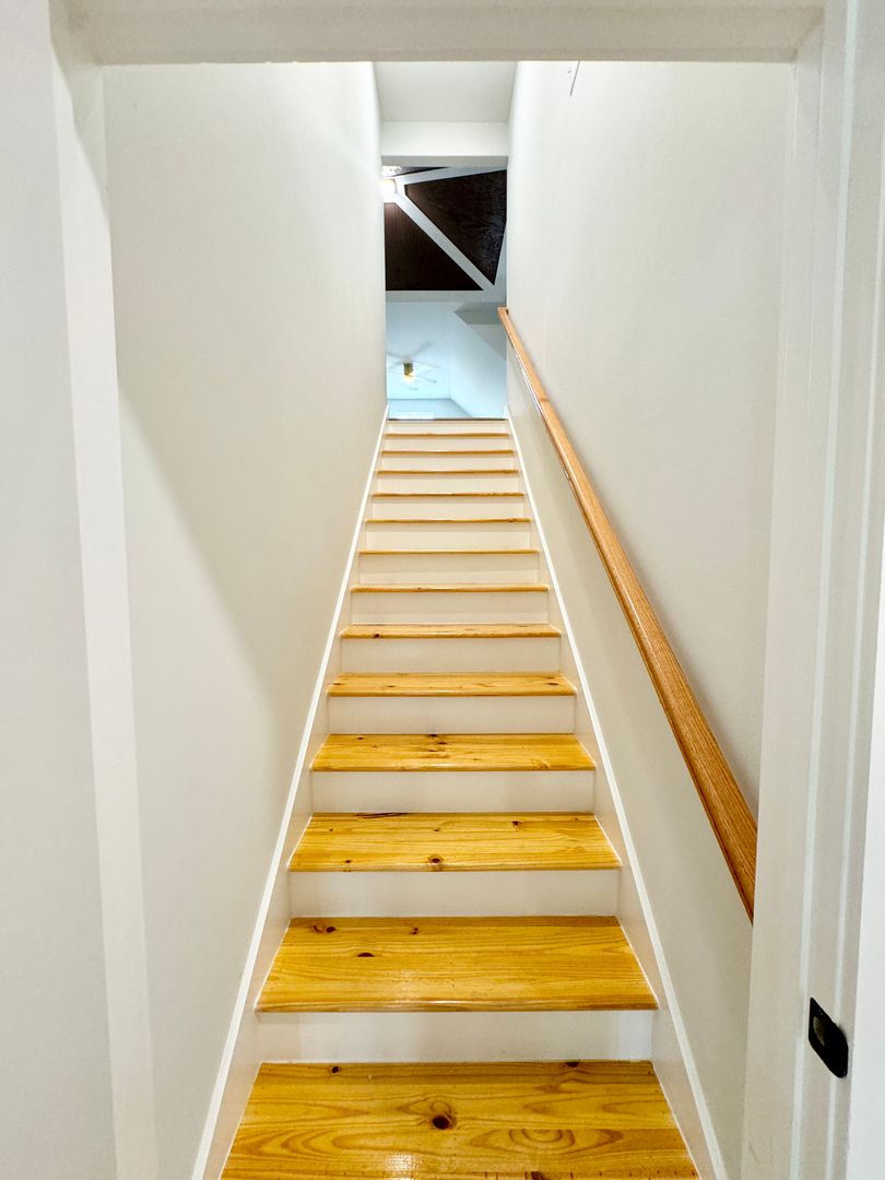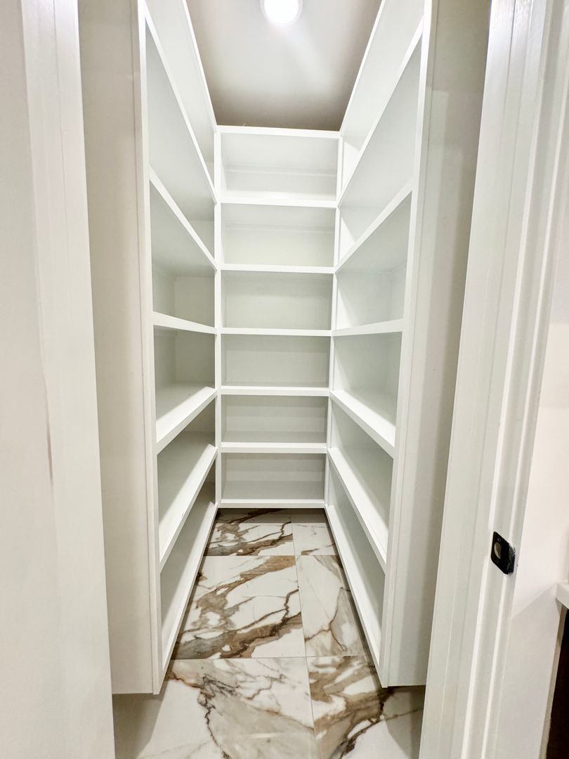 Kitchen space with all new stainless steel appliances, beautiful bar area, and additional dining space for plenty of room for entertaining! Full size pantry with built-in wooden shelving