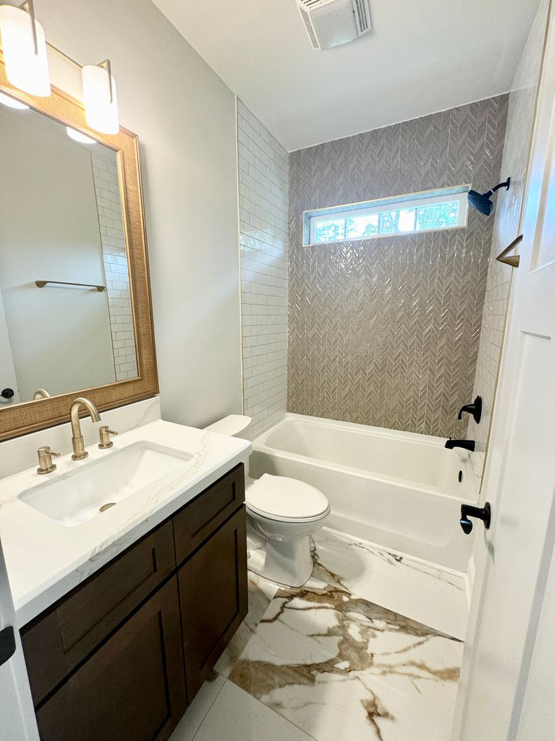 Master suite with detailed ceilings, en-suite bath with soaking tub, walk-in solid surface shower & TWO large walk-in closets!